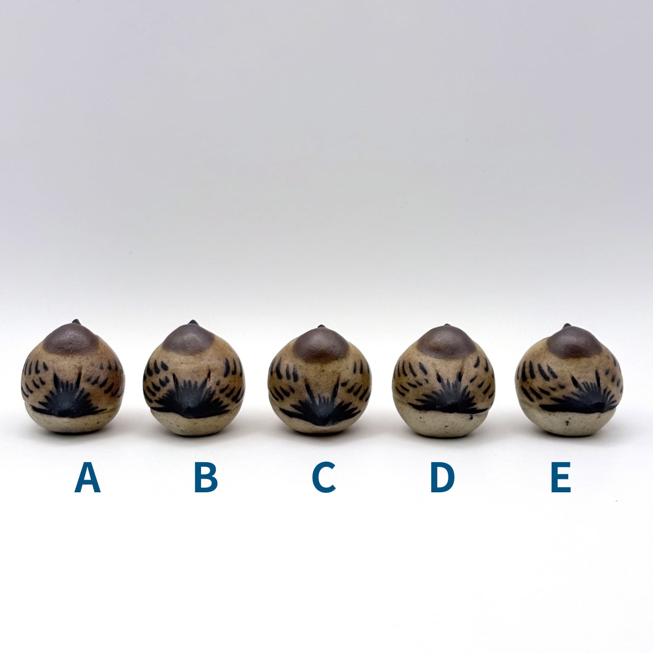 型を使わず、ひとつひとつ手びねり・手描きで制作しています。