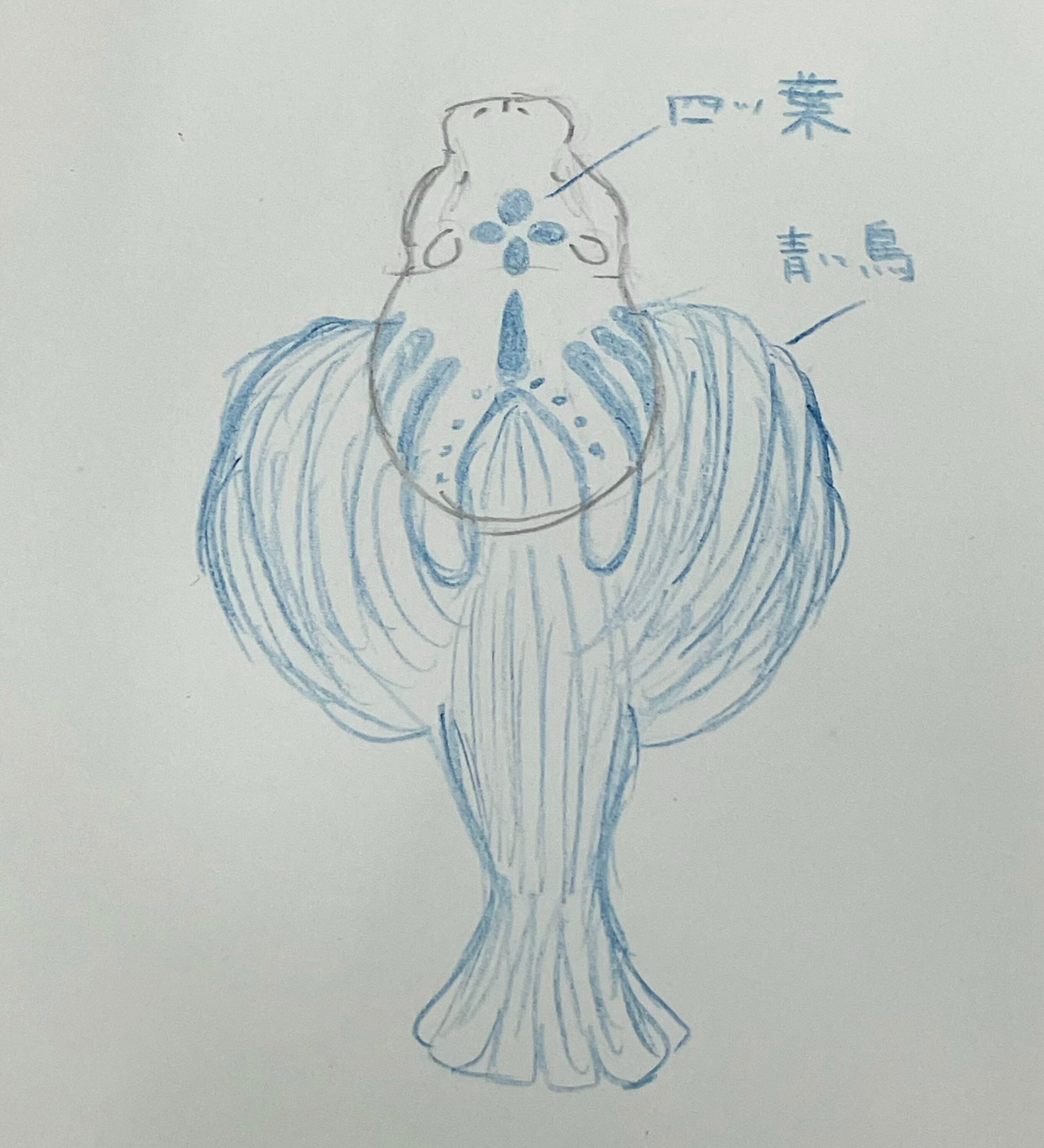 絵柄のイメージは四葉のクローバーを咥えた青い鳥。